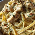 Oh, let’s talk about the perfect partners for this spicy, creamy dream! I always serve my Cajun chicken alfredo with garlic bread—because who can resist mopping up that extra sauce? A simple green salad with lemon vinaigrette cuts through the richness beautifully. For veggie lovers, roasted asparagus or sautéed spinach are my go-tos. And if you’re feeding a crowd? Add some grilled shrimp on top—because more is always better when it comes to this dish!